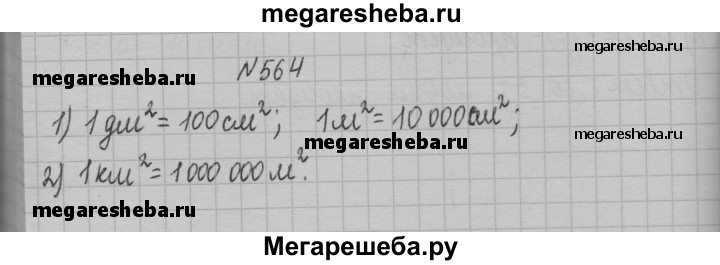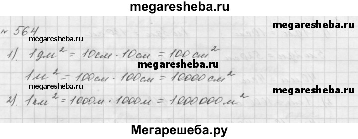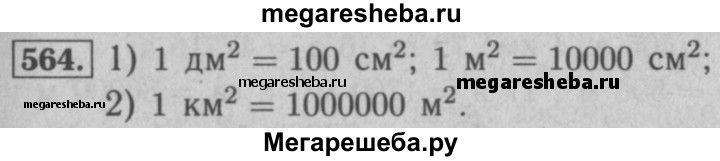 564. 1) Сколько квадратных сантиметров содержит 1 дм^2? 1 м^2? 2) Сколько квадратных метров содержит 1 км^2?