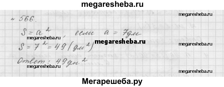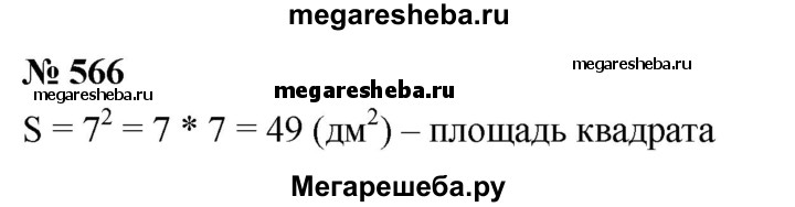 566. Вычислите площадь квадрата со стороной 7 дм.