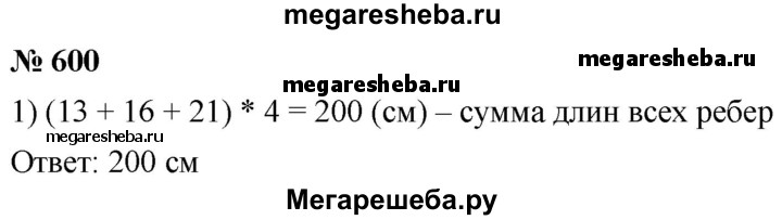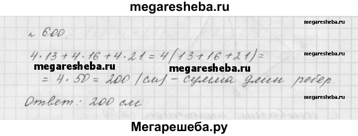 600. Найдите сумму длин всех рёбер прямоугольного параллелепипеда, измерения которого равны 13 см, 16 см, 21 см.