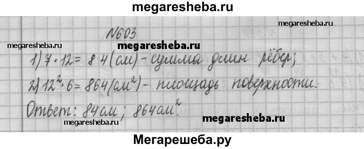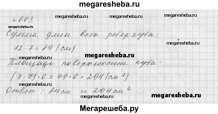 603. Найдите сумму длин всех рёбер и площадь поверхности куба, если его ребро равно 7 см.
