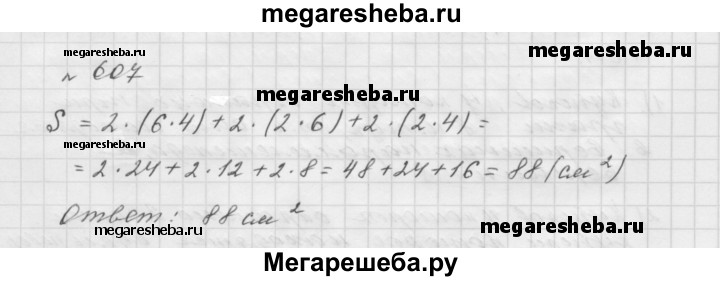 607. Вычислите площадь поверхности прямоугольного параллелепипеда, развёртка которого изображена на рисунке 174.