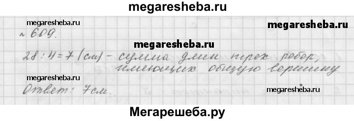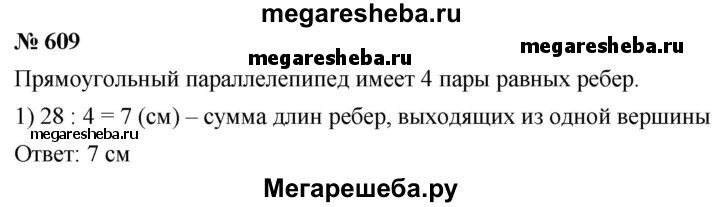 609. Сумма длин всех рёбер прямоугольного параллелепипеда равна 28 см. Найдите сумму длин трёх его рёбер, имеющих общую вершину.
