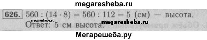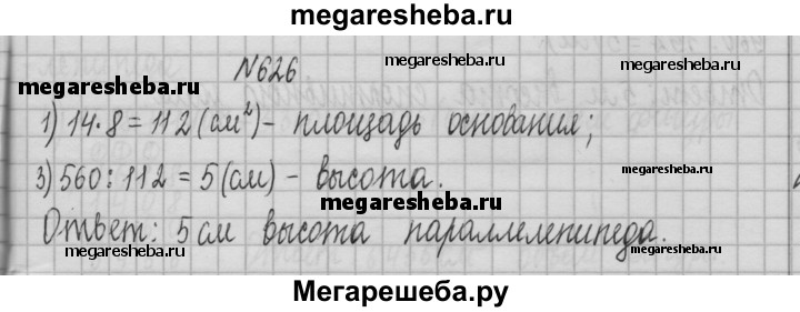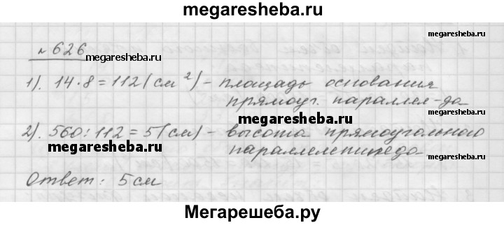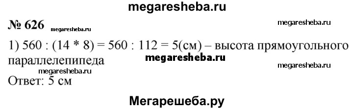 626. Объём прямоугольного параллелепипеда равен 560 см^3, длина – 14 см, ширина – 8 см. Найдите высоту данного параллелепипеда.