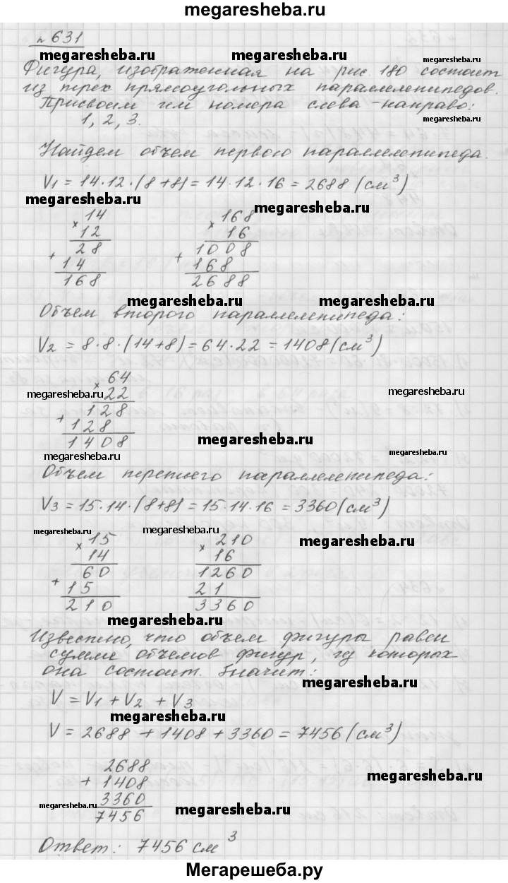 631. Найдите объём фигуры, изображённой на рисунке 180 (размеры даны в сантиметрах).