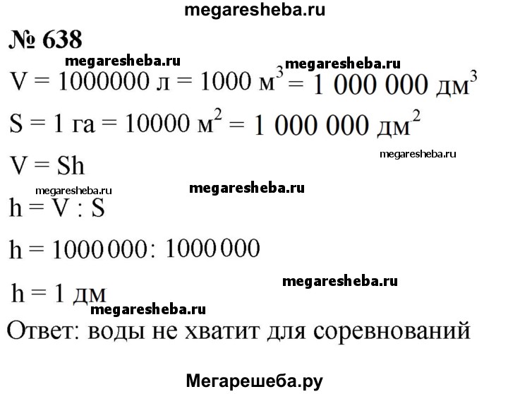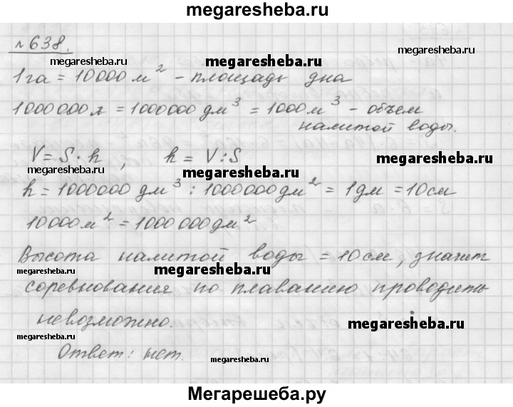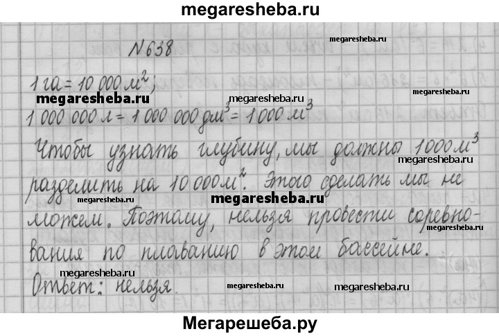 638, В бассейн, площадь дна которого равна 1 га, налили 1 000 000 л воды. Можно ли в этом бассейне провести соревнования по плаванию?