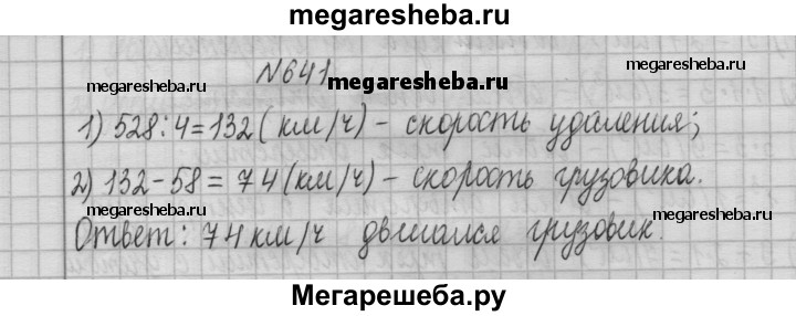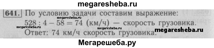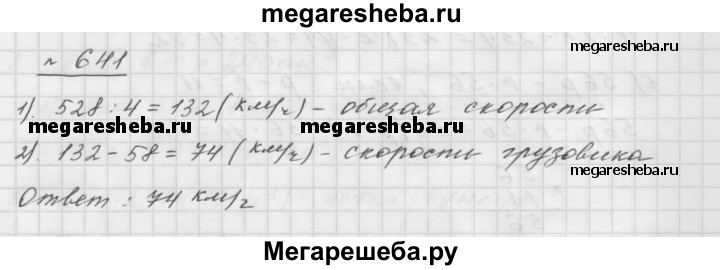 641. Из одного города одновременно в противоположных направлениях выехали автобус и грузовик. Через 4 ч после начала движения расстояние между ними составляло 528 км. Скорость движения автобуса 58 км/ч. С какой скоростью двигался грузовик?