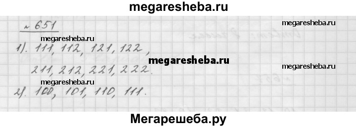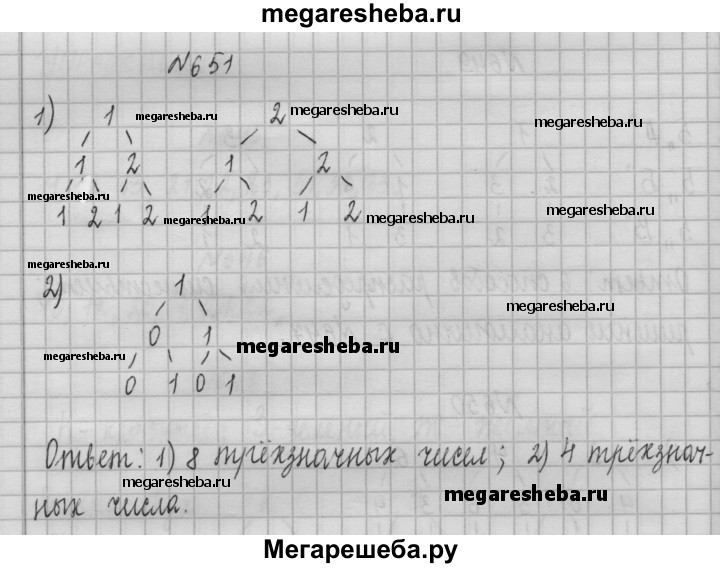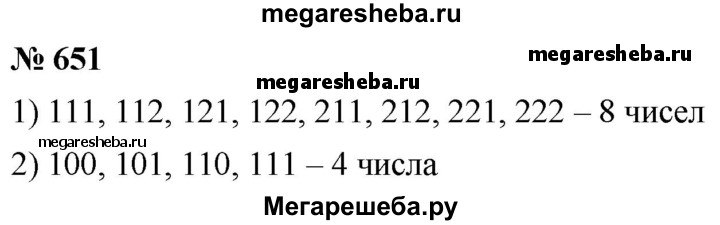 651. Сколько различных трёхзначных чисел можно составить из цифр: 1)1 и 2; 2) 0 и 1? (Цифры могут повторяться.)
