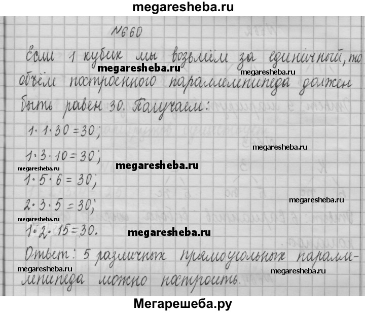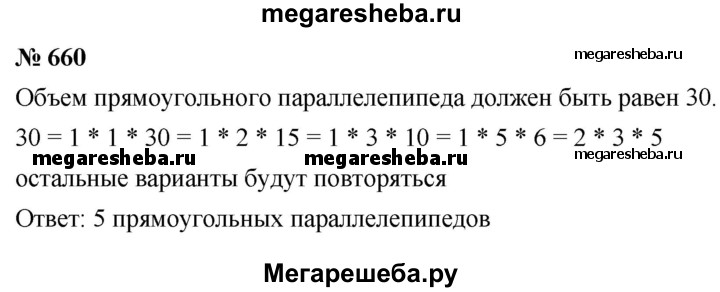 660. У Ани есть 30 одинаковых кубиков. Сколько различных прямоугольных параллелепипедов она может из них составить, если для построения одного параллелепипеда надо использовать все имеющиеся 30 кубиков?