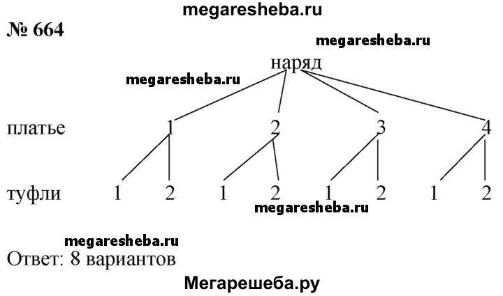 664. У Тани есть четыре платья и две пары туфель. Сколько у Тани есть вариантов выбора наряда?