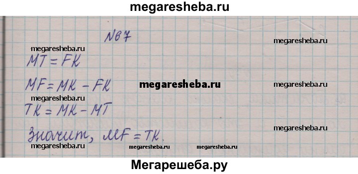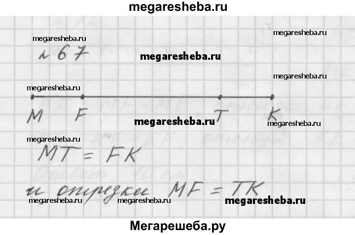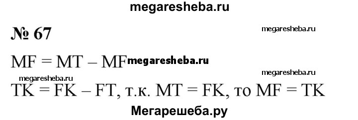 67. Отрезки МТ и FK равны (рис. 25). Сравните отрезки MF и ТК.