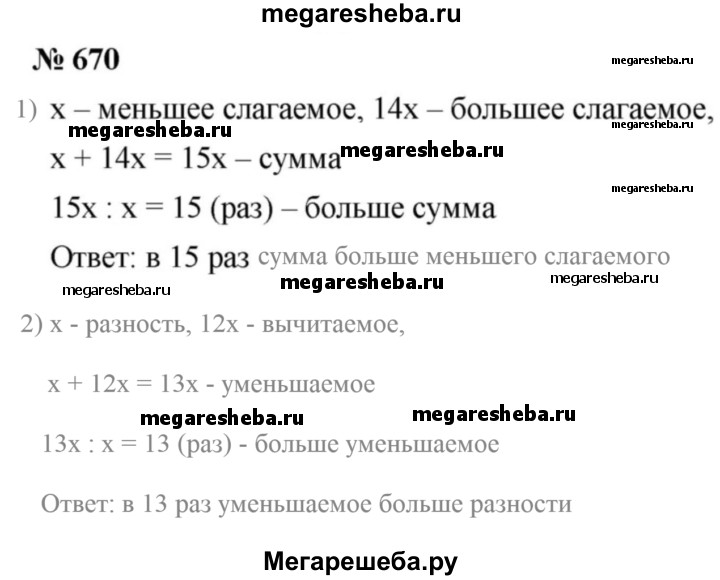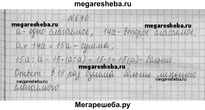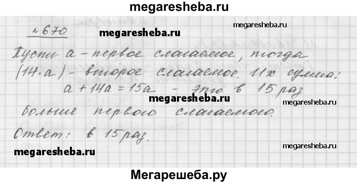 670. Одно из слагаемых в 14 раз больше другого. Во сколько раз их сумма больше меньшего слагаемого?