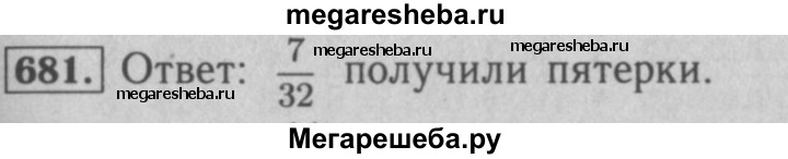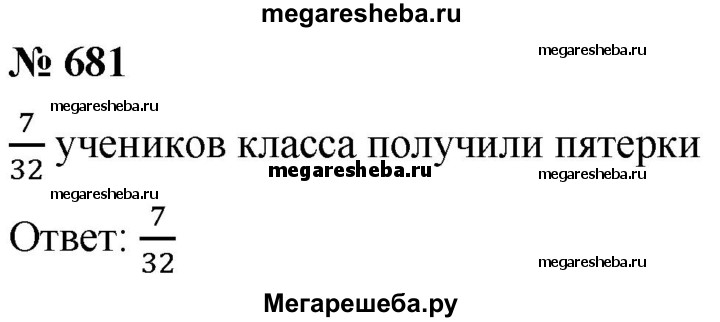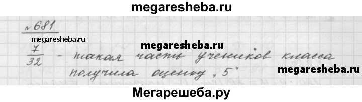 681. В 5 классе учатся 32 ученика, из них 7 учеников получили за контрольную работу по математике оценку «5». Какая часть учеников класса получила за контрольную работу по математике оценку «5*?