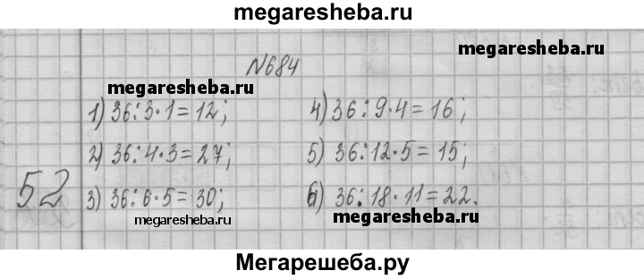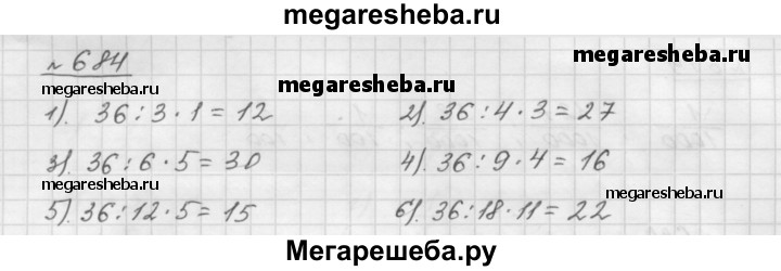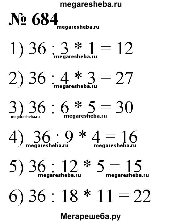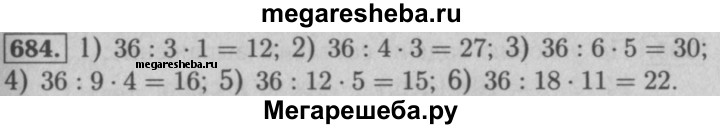 684. Найдите от числа 36: 1) 1/3; 2) 3/4; 3) 5/6; 4) 4/9; 5) 5/12; 6) 11/18.