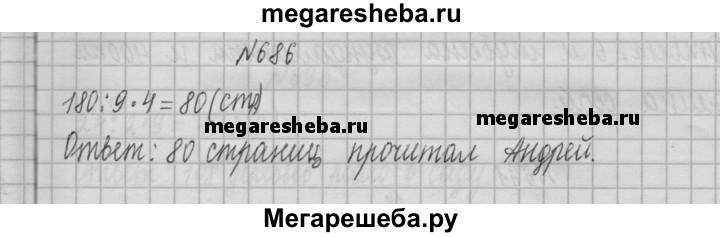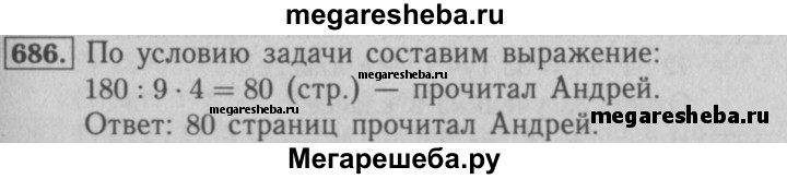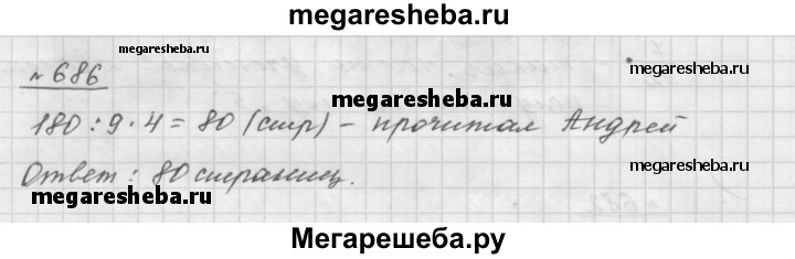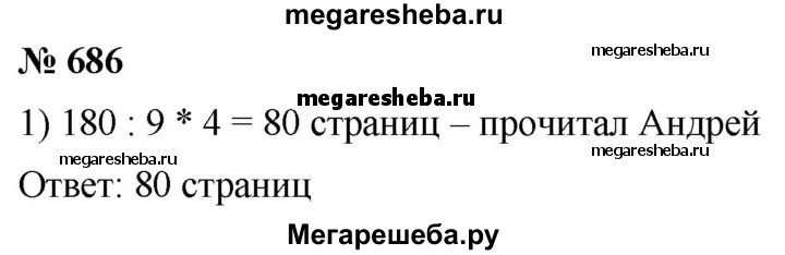 686. Андрей прочитал 4/9 книги, в которой 180 страниц. Сколько страниц прочитал Андрей?