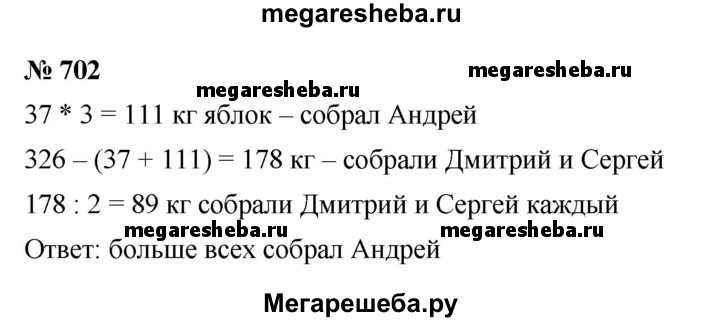 Подробный решебник (ГДЗ) по Математике за 5 (пятый) класс - готовый ответ номер - 702. Авторы учебника: Мерзляк, Полонский, Якир, Базовый уровень. Издательство: Вентана-граф 2016-2023.