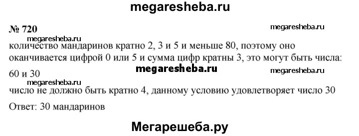 Подробный решебник (ГДЗ) по Математике за 5 (пятый) класс - готовый ответ номер - 720. Авторы учебника: Мерзляк, Полонский, Якир, Базовый уровень. Издательство: Вентана-граф 2016-2023.