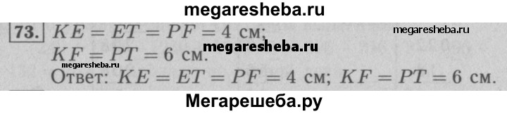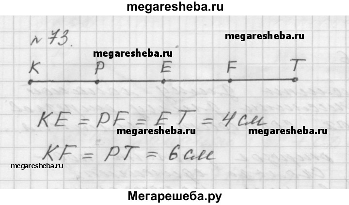 72. Известно, что МF = 30 см, МЕ= 18 см, КF = 22 см (рис. 28). Найдите длину отрезка КЕ.