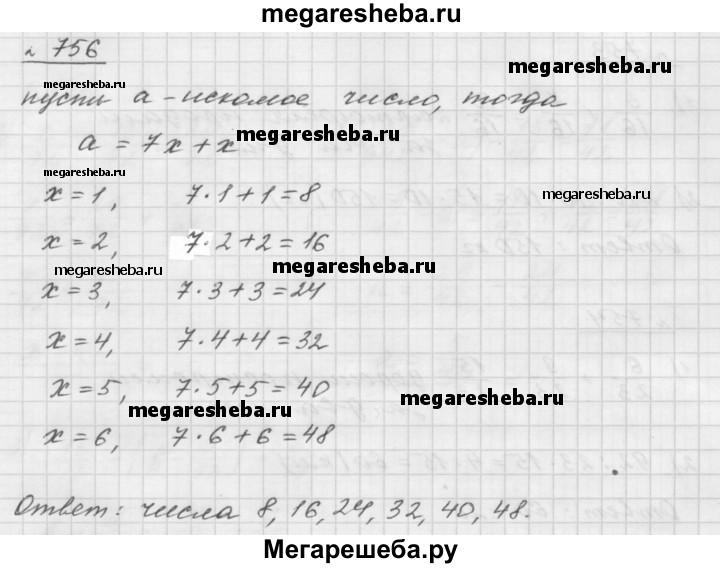 756. Найдите все натуральные числа, при делении которых на 7 неполное частное будет равно остатку.