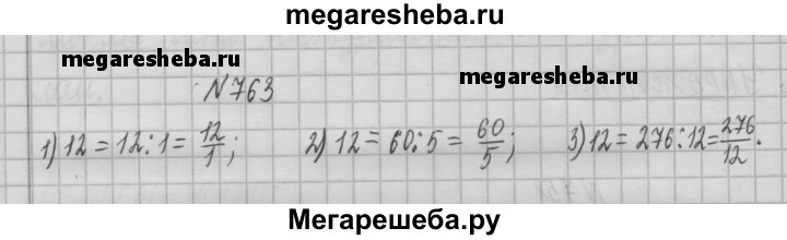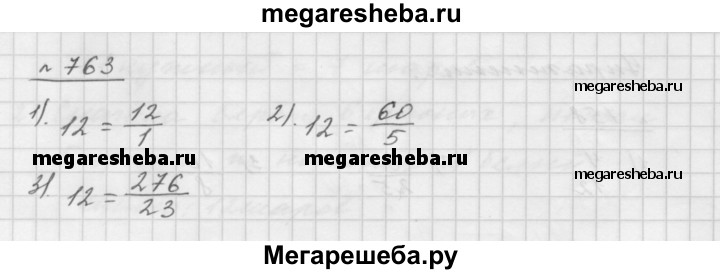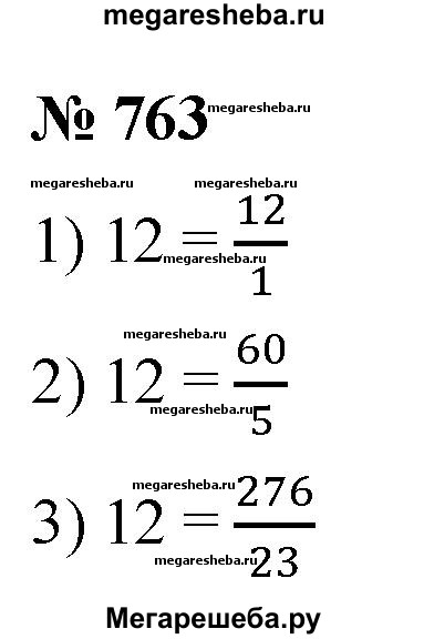 763. Запишите число 12 в виде дроби со знаменателем: 1)1; 2)5; 3)23.
