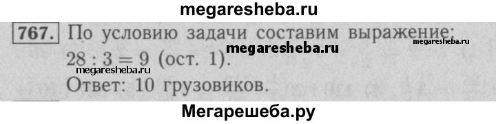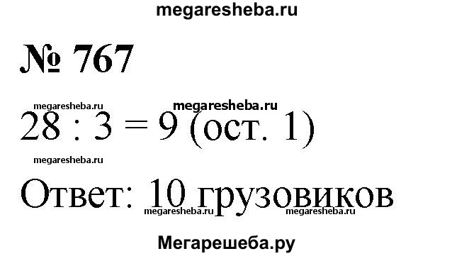 767. На один грузовик можно погрузить 3 т груза. Сколько надо грузовиков, чтобы перевезти 28 т?