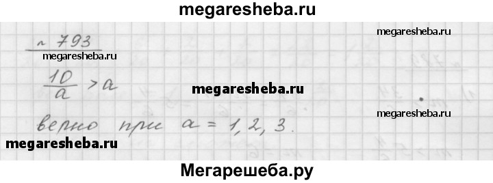 793. При каких натуральных значениях а является верным неравенство 10/a, левая часть которого — неправильная дробь?