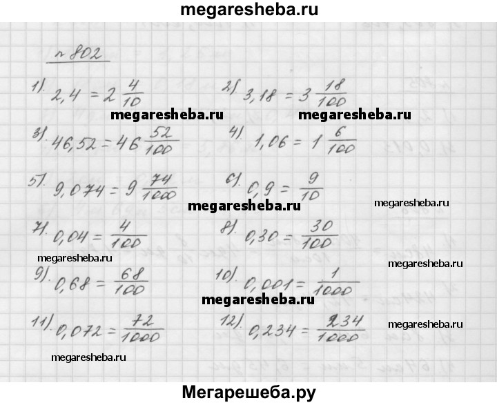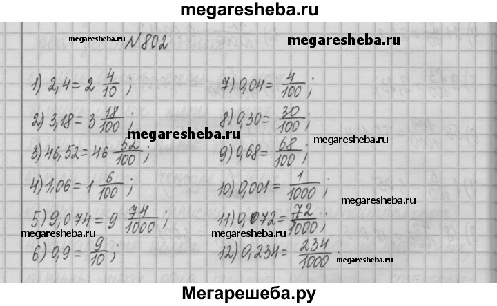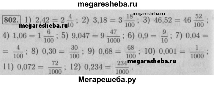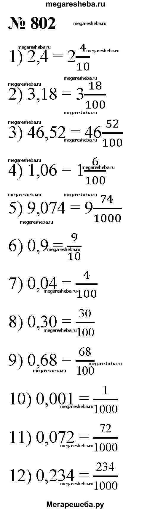 802. Запишите число в виде обыкновенной дроби или смешанного числа: