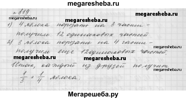 819. Как поделить поровну 7 яблок между 12 друзьями, если каждое яблоко можно разрезать не более чем на 4 части?