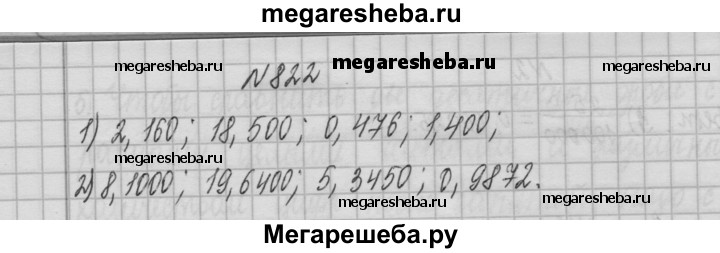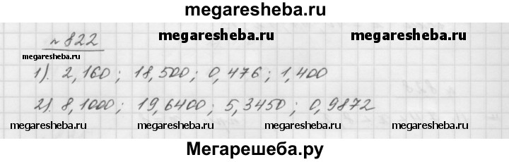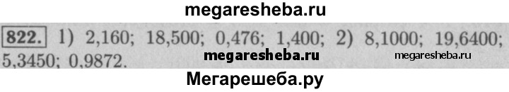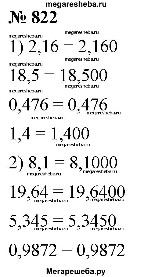 822. Уравняйте количество цифр после запятой в данных дробях: 1) 2,16; 18,5; 0,476; 1,4; 2) 8,1; 19,64; 5,345; 0,9872.