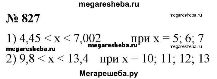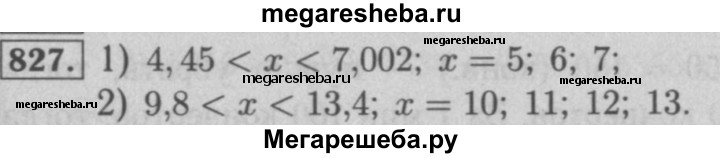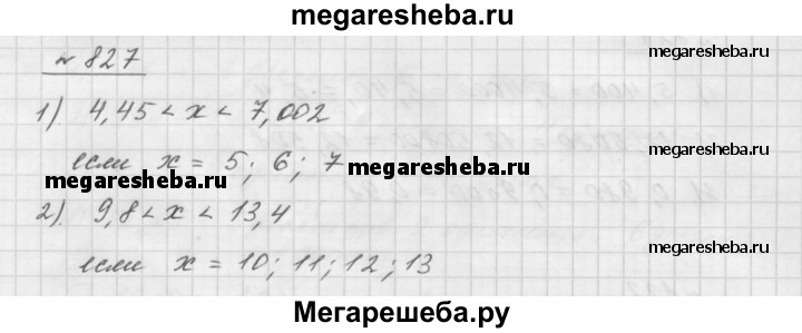 827. Найдите все натуральные значения x при которых верно неравенство: 1) 4,45 < x < 7,002; 2) 9,8 < x < 13,4.