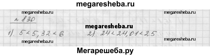 830. Между какими соседними числами натурального ряда находится дробь: 1) 5,32; 2) 24,01? Ответ запишите в виде двойного неравенства.