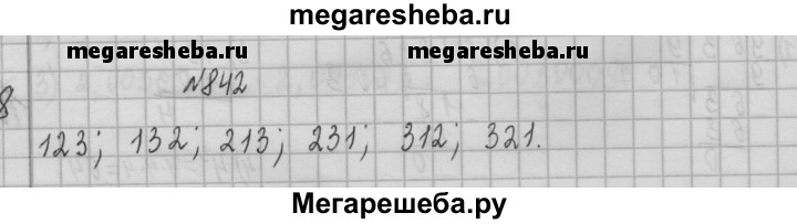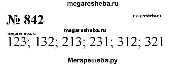 842. Расположите в порядке возрастания все трёхзначные числа, которые можно записать с помощью цифр 1, 2 и 3 (цифры в записи числа не повторяются).