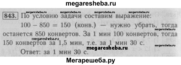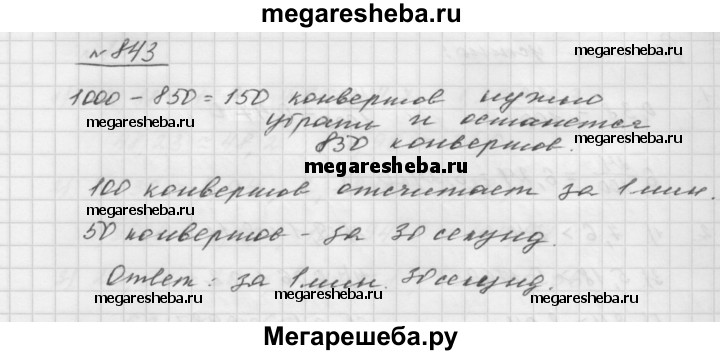 843. В пачке было 1 ООО конвертов. За какое наименьшее время почтальон сможет отложить 850 конвертов, если за 1 мин он отсчитывает 100 конвертов?