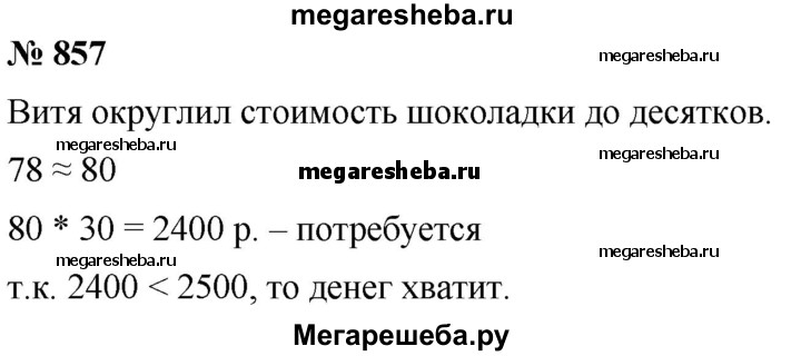 Подробный решебник (ГДЗ) по Математике за 5 (пятый) класс - готовый ответ номер - 857. Авторы учебника: Мерзляк, Полонский, Якир, Базовый уровень. Издательство: Вентана-граф 2016-2023.
