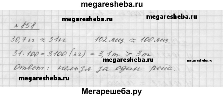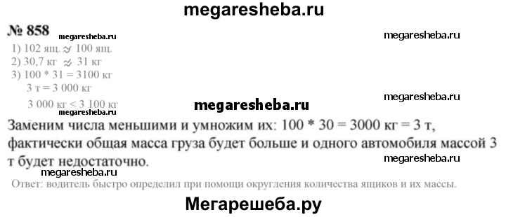 858. Требуется привезти 102 ящика массой 30,7 кг каждый. Водитель автомобиля, грузоподъёмность которого составляет 3 т, быстро определил, что выполнить это задание, сделав один рейс, невозможно. Как, по вашему мнению, он смог это быстро определить?