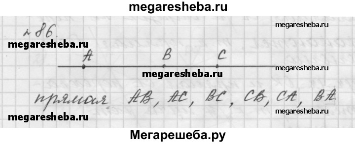 86. Проведите произвольную прямую и отметьте на ней точки А, В и С. Запишите все возможные обозначения этой прямой.