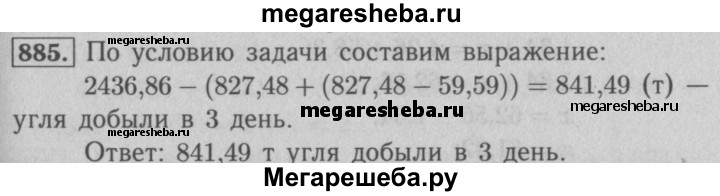 Подробный решебник (ГДЗ) по Математике за 5 (пятый) класс - готовый ответ номер - 885. Авторы учебника: Мерзляк, Полонский, Якир, Базовый уровень. Издательство: Вентана-граф 2016-2023.