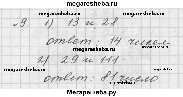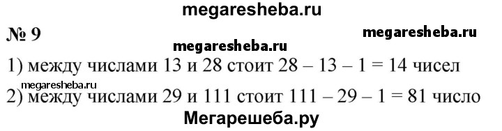 9. Сколько чисел стоит в натуральном ряду между числами: 1) 13 и 28; 2) 29 и 111?