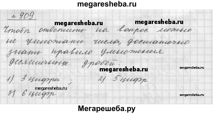 909. Сколько цифр записано справа от запятой в произведении чисел: 1) 4,2 и 8,14; 2) 9,36 и 19,426; 3) 0,018 и 0,001?