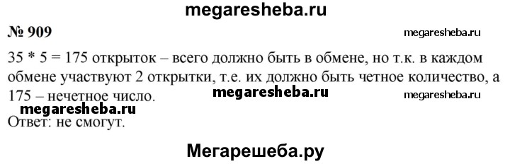 Подробный решебник (ГДЗ) по Математике за 5 (пятый) класс - готовый ответ номер - 909. Авторы учебника: Мерзляк, Полонский, Якир, Базовый уровень. Издательство: Вентана-граф 2016-2023.