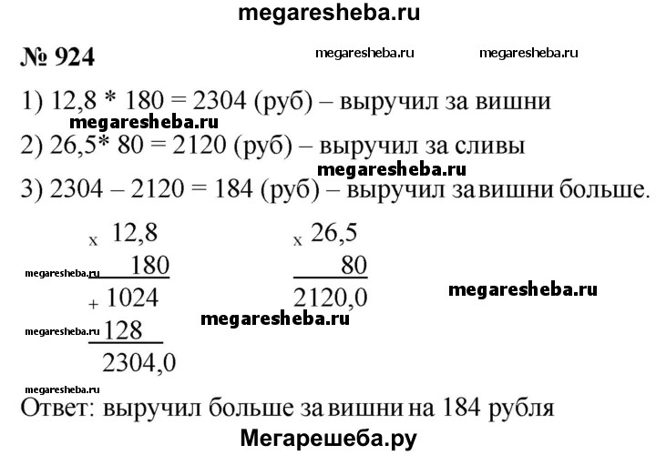Подробный решебник (ГДЗ) по Математике за 5 (пятый) класс - готовый ответ номер - 924. Авторы учебника: Мерзляк, Полонский, Якир, Базовый уровень. Издательство: Вентана-граф 2016-2023.