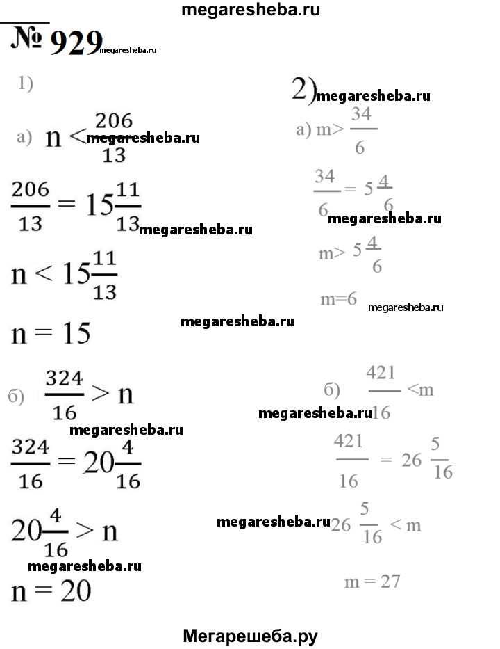 Подробный решебник (ГДЗ) по Математике за 5 (пятый) класс - готовый ответ номер - 929. Авторы учебника: Мерзляк, Полонский, Якир, Базовый уровень. Издательство: Вентана-граф 2016-2023.