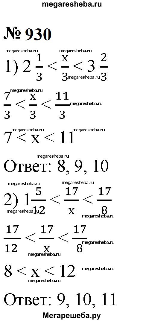 Подробный решебник (ГДЗ) по Математике за 5 (пятый) класс - готовый ответ номер - 930. Авторы учебника: Мерзляк, Полонский, Якир, Базовый уровень. Издательство: Вентана-граф 2016-2023.
