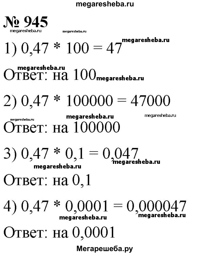 945. На какое число надо умножить число 0,47, чтобы получить: 1) 47; 2) 47 000; 3) 0,047; 4) 0,000047?