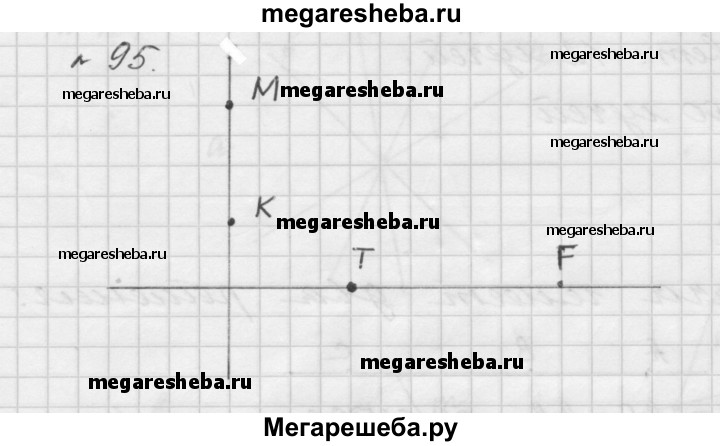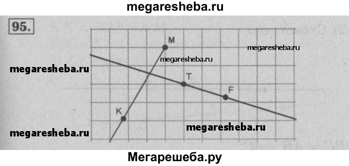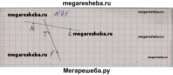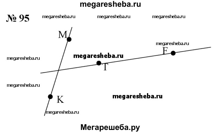 95. Отметьте на плоскости точки М, К, Т и F так, чтобы луч МК пересекал прямую ТF, а луч TF не пересекал прямую МК.