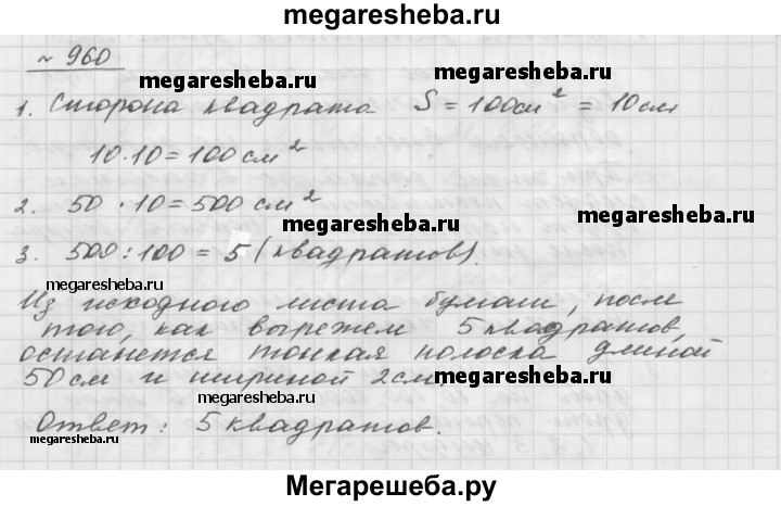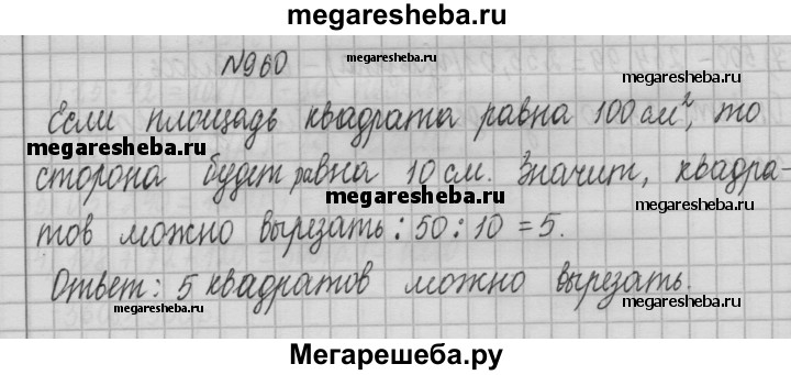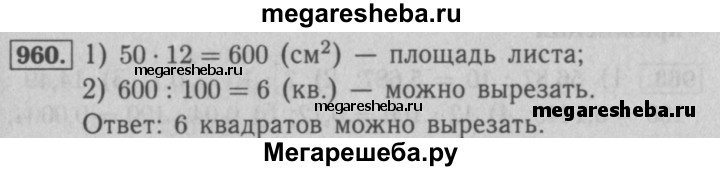 960. Длина прямоугольного листа бумаги равна 50 см, а ширина — 12 см. Сколько квадратов площадью 100 см2 можно вырезать из этого листа бумаги?