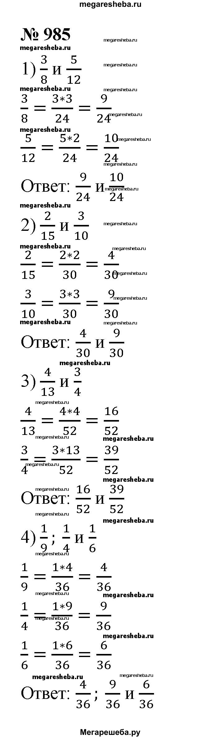 Подробный решебник (ГДЗ) по Математике за 5 (пятый) класс - готовый ответ номер - 985. Авторы учебника: Мерзляк, Полонский, Якир, Базовый уровень. Издательство: Вентана-граф 2016-2023.