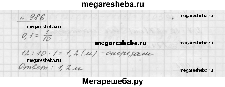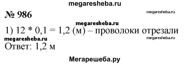 986. От проволоки длиной 12 м отрезали кусок, длина которого составляла 0,1 длины всей проволоки. Сколько метров проволоки отрезали?