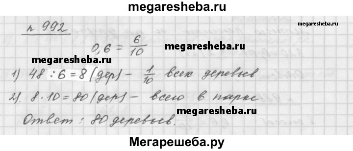 992. В парке растёт 48 елей, что составляет 0,6 всех деревьев. Сколько деревьев растёт в парке?
