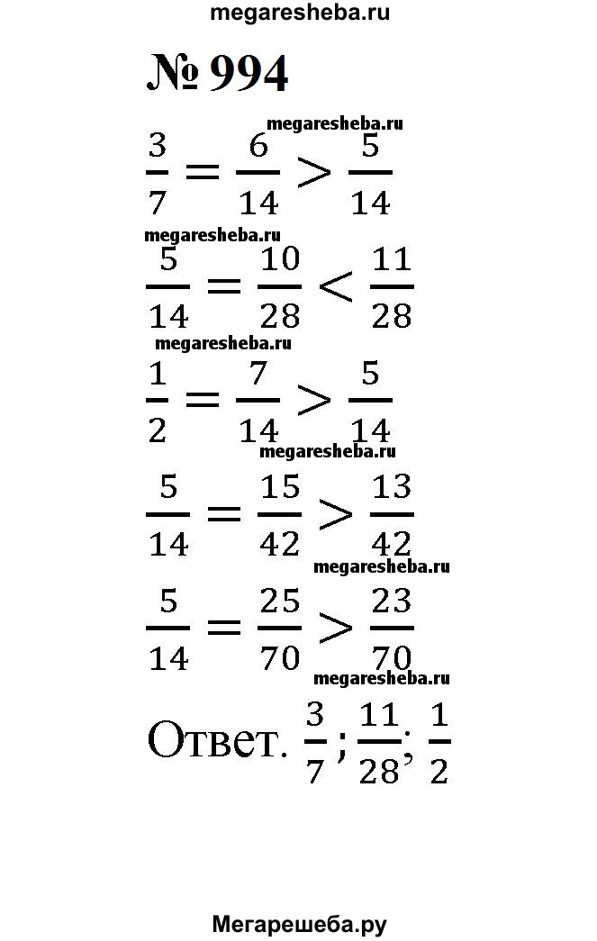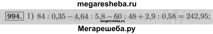 Подробный решебник (ГДЗ) по Математике за 5 (пятый) класс - готовый ответ номер - 994. Авторы учебника: Мерзляк, Полонский, Якир, Базовый уровень. Издательство: Вентана-граф 2016-2023.