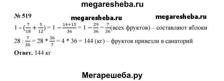 Подробный решебник (ГДЗ) по Математике за 6 (шестой) класс - готовый ответ §15 упражнение - (519). Авторы учебника: Мерзляк, Полонский, Якир, Базовый уровень. Издательство: Вентана-граф 2016-2023.
